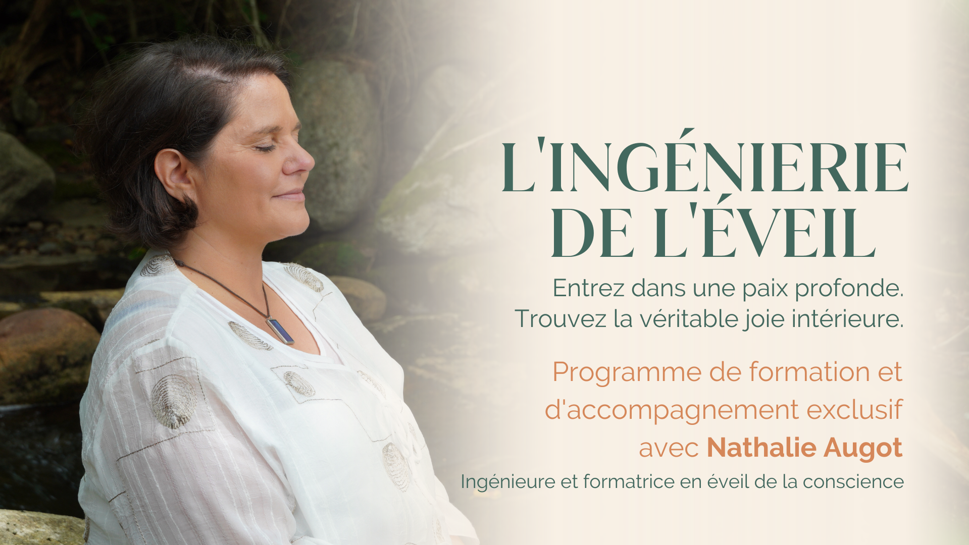 Ce chemin complètement unique, Nathalie l'a nommé l'Ingénierie de l'éveil. C'est un programme qui offre à chacun des méthodes et des techniques éprouvées pour atteindre un bien-être physique, mental et spirituel, pour instaurer un calme intérieur et extérieur.